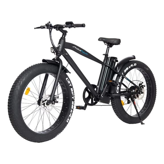 La bicicletta elettrica Skateflash Fat è adatta per una guida più aggressiva, grazie alle ruote larghe 4 ‘riesce ad andare su superfici più difficili rispetto ad altri tipi di bici. I raggi in acciaio la rendono più resistente ai colpi. È limitata per legge a 25km / h, pertanto, da questa velocità, il motore non avrà più l’assistenza alla pedalata. Ha un cambio Shimano a 7 velocità, che aiuta maggiormente a scalare colline e terreni diversi.