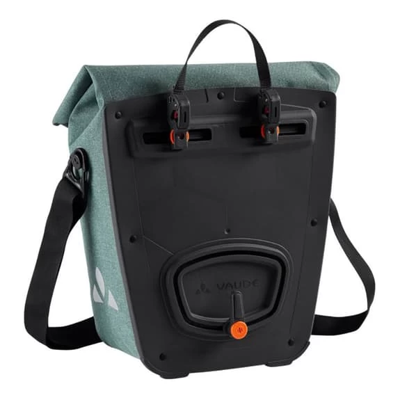 La borsa Vaude ReCycle Pro, con un volume di 18,5 litri, ha tutti i componenti di chiusura in plastica riciclata. Il pannello con copertura rigida è realizzato con il 64% di materiali riciclati dai rifiuti domestici. La borsa robusta, riciclata al 100%, ha un look tessile ed è completamente priva di PVC con saldatura hf per renderla impermeabile. La borsa dal design elegante presenta una chiusura con patta di facile accesso, un ampio scomparto principale e una piccola tasca con zip. Caratteristiche come una tracolla staccabile e loghi riflettenti ne completano il design. La borsa fa parte della gamma ‘Made in Germany’ di Vaude, il che significa che viene prodotta in modo climaticamente neutrale presso la sede dell’azienda in Germania. Fa anche un grande lavoro di protezione dell’ambiente, dato che sia il sistema di attacco che lo zaino sono fatti con materiali riciclati al 100% e presentano il trattamento Eco Finish. Il logo Vaude Green Shape identifica che i prodotti sono funzionali ed ecologici e sono realizzati con materiali sostenibili.