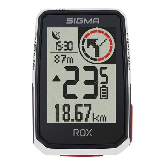 Il display da 2 pollici ad alto contrasto del ROX 2.0 è di facile consultazione anche in movimento grazie alle dimensioni extra e alle cifre grandi. Il campo dati Red Circle in alto a destra dello schermo ha uno sfondo a colori e offre un modo innovativo ed emozionante per visualizzare i dati di allenamento o le istruzioni di navigazione. Con l’app gratuita SIGMA RIDE per smartphone si può impostare la vista dello schermo con pochi clic: si possono configurare fino a sei schermi con due valori ciascuno. La velocità istantanea è sempre visualizzata come terzo valore.