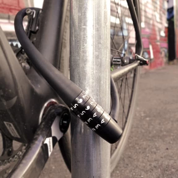 Lucchetto Knog Party Combo in acciaio rinforzato e rivestito in fibra anti taglio. É lungo 620 mm, ha un diametro di 12 mm e pesa 250 g. Non offre punti di leva e ha un cilindro di sicurezza a 4 cifre e 10.000 combinazioni possibili.