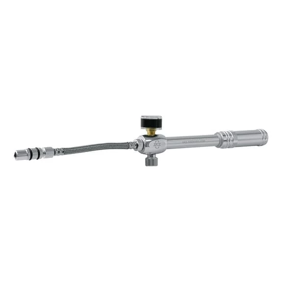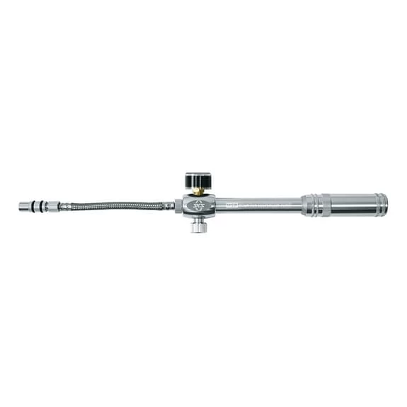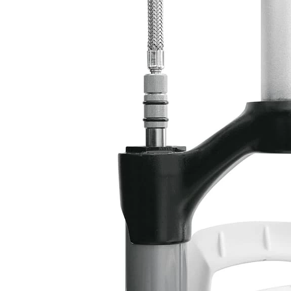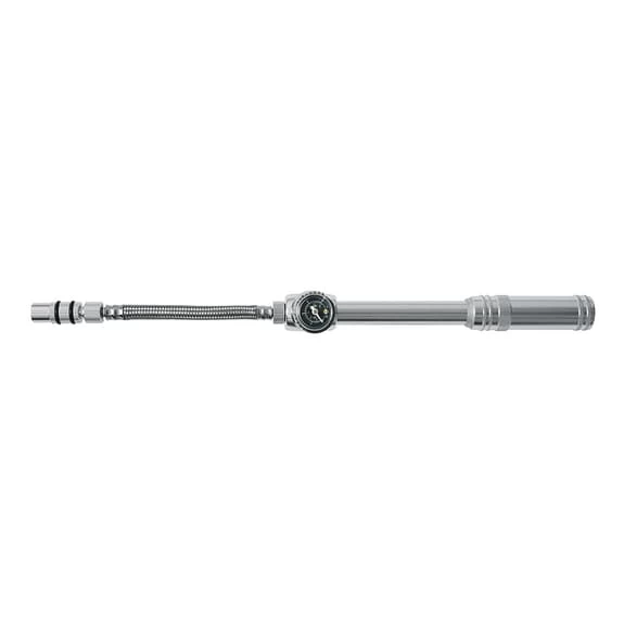 La pompa manuale SKS MSP (Mountain Suspension Pump) gode di un manicotto flessibile di rete d’acciaio che si svita dal cilindro della pompa per un percorso compatto. La connessione della valvola avviene con un nuovo connettore a vite in due tappe che permette di avvitare e svitare senza perdere la pressione. Il cricchetto di riduzione della pressione permette di raggiungere esattamente il valore desiderato.